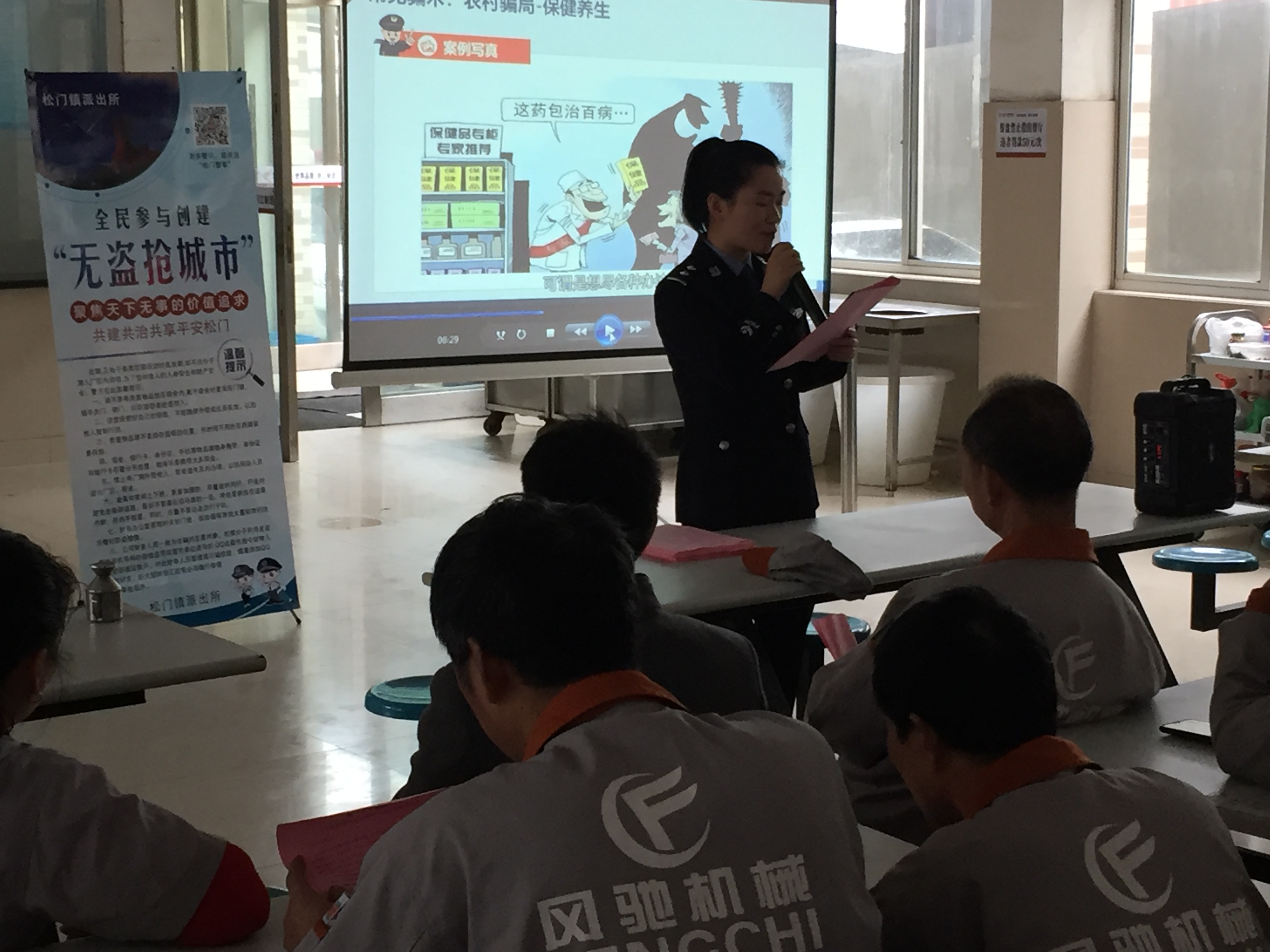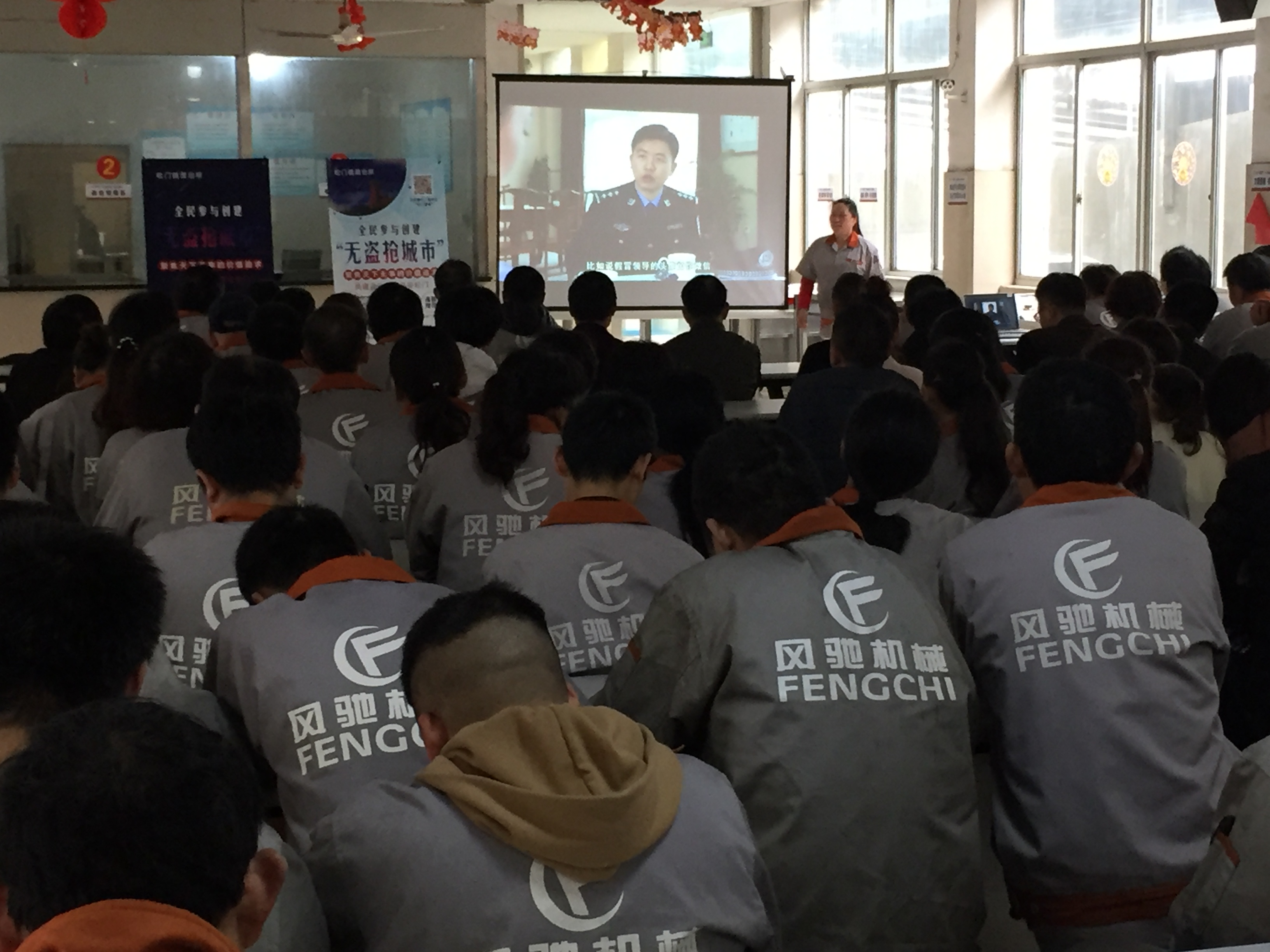 公司為了提高我企業(yè)員工的防盜、防強(qiáng)、防騙意識(shí),同時(shí)大力支持創(chuàng)建臺(tái)州市“無(wú)盜搶城市”宣傳活動(dòng),在2019年3月20日下午,我司誠(chéng)邀松門(mén)派出所人員前來(lái)給員工上了一堂防盜搶安全知識(shí)課,同時(shí)播放了創(chuàng)建“無(wú)盜搶城市”宣傳視頻。